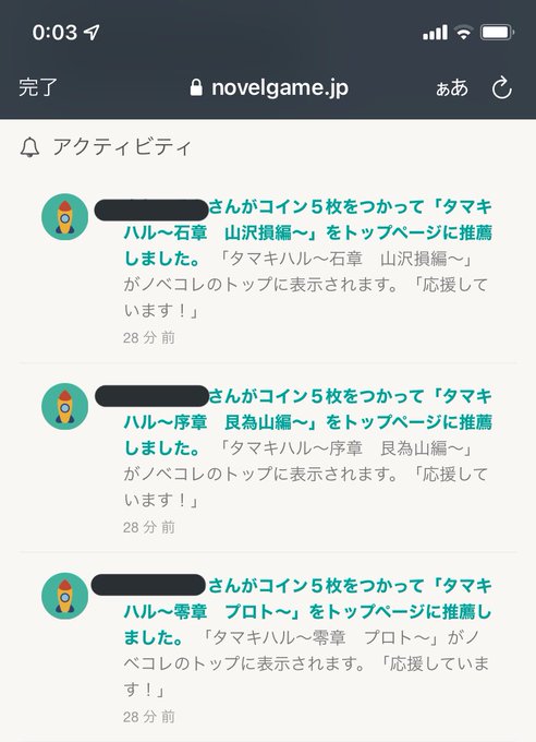 ノベコレのトップ画面に