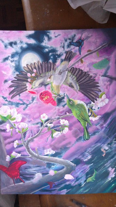 絵は完成したんだけど、もう暗いし撮影しても色がちゃんと出ないので今日はオヒラキです