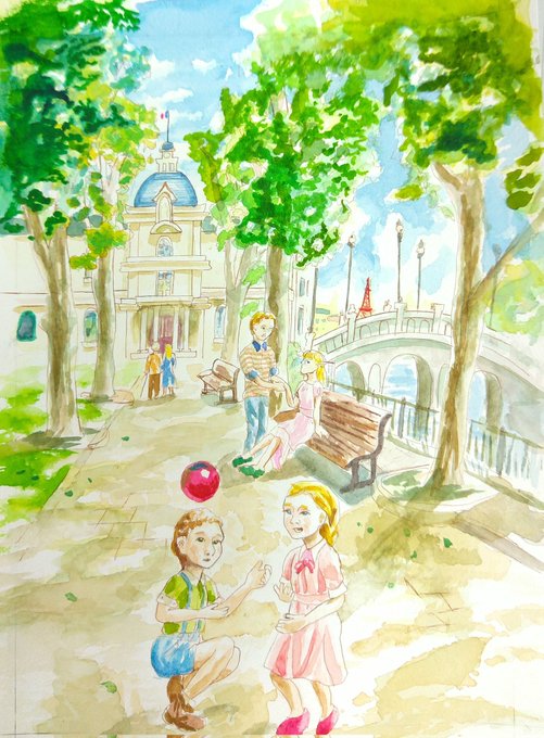 アクリルガッシュと透明水彩