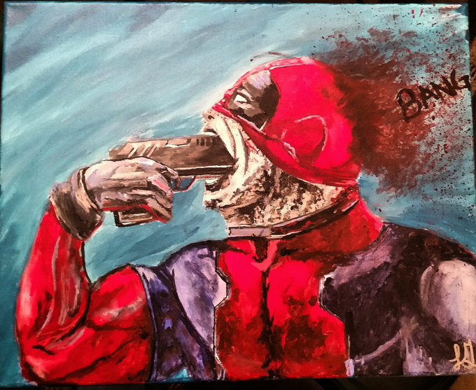 Painting of Deadpool I did, Had some good and bad reactions to it available for purchase #allart, #deadpool, #art