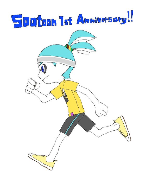 めっちゃ遅くなったけどスプラトゥーン一周年おめでとう!!!スプラトゥーンに出会えて本当によかった!!マイイカとお気に入り装備を描きました #スプラトゥーン1周年
