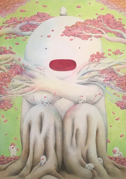 ninko ouzou 氏は主に少女をモチーフに、染み入るような色彩で瑞々しい感情を描いています。本展では新作ペインティングのほか、ドローイング作品などが出展されます。