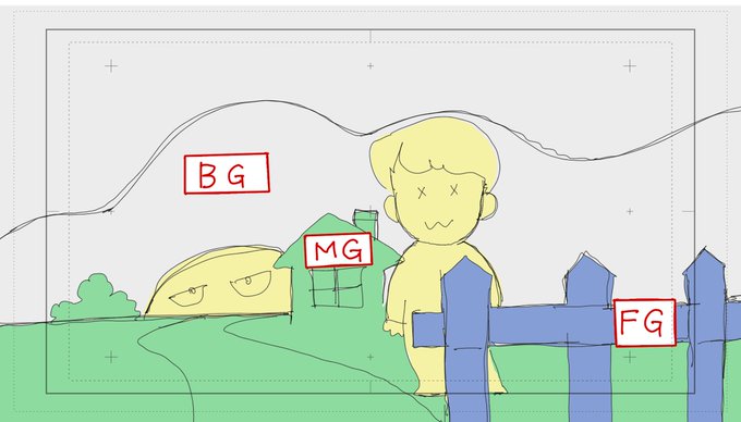 主にそういう「カット内で描くべきもの」を画面(フレーム)に対して配置します