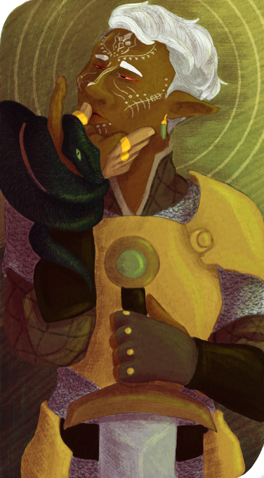 I decided I wanted to try to incorporate at least some elements from Dorian's so that's why there's a snake wrapping around their hands.