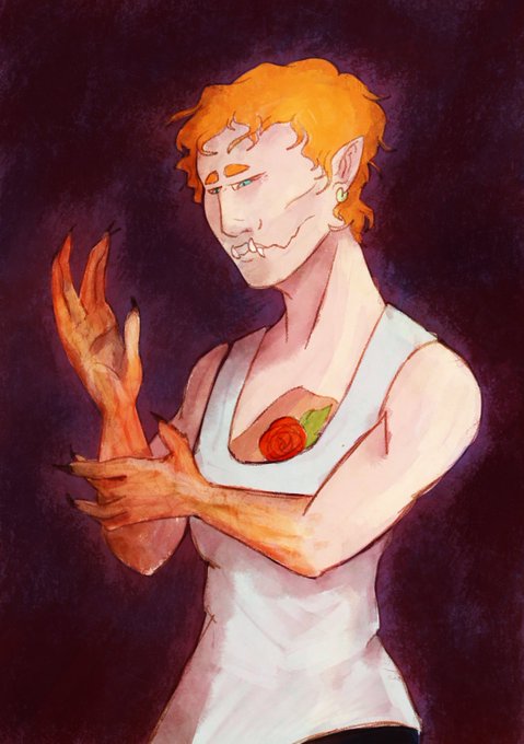 Also here's this thing I drew earlier of my oc who usually has a blue color scheme with an orange one.