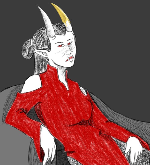 A loose "before & after" of a demonic oc of mine called Cypress, several years apart. She's from the same story as Crys & is a massive lesbian.