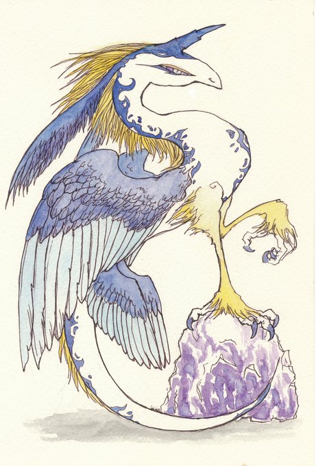 鳥型の不思議生物。 青い方はだいぶ古い絵 #アナログ