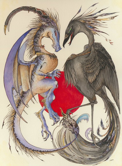 7年前の絵 ドラゴンと黒い鳥 #アナログ