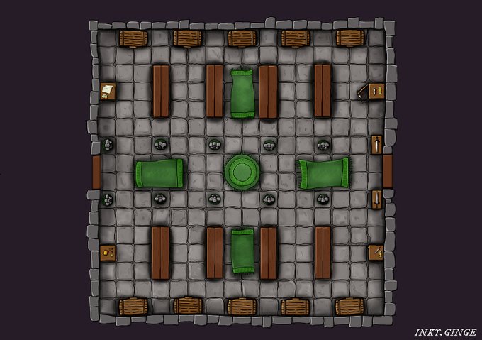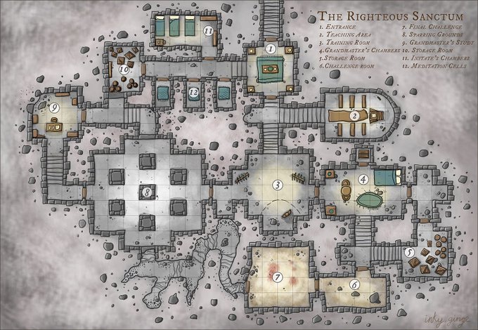 Little WIP, map of a wing of a large official building which has neen over taken by weird creatures and lots of sand. #ttrpg #cartography #dnd5e