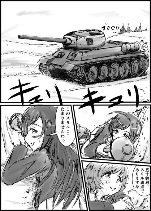 楽しそうに戦車を狩る華さんと優花里さん。 描いてみて改めて思ったけど、良いコンビやで。 #はなゆか