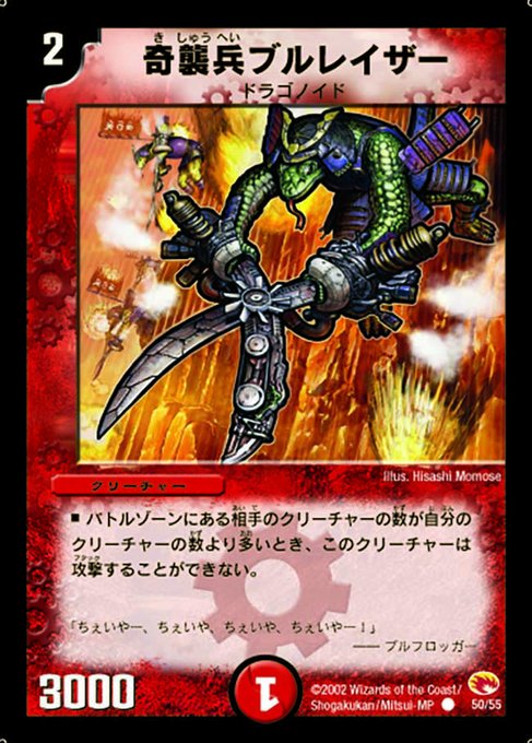 思ったんだけど、《ドラグライド》がおそらく上のドラゴノイドの呼称(あるいはドラゴノイドとワイバーンを合わせた呼称)であるように、《ブルフロッガー》も「ブルレイザーと彼のデューンゲッコーを合わせた呼び名」なんじゃないだろうか。