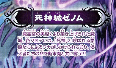 神化編では、闇文明の本拠地は「死神城ゼノム」となっており、旧来から闇の本拠とされてきた魔霊宮は通り道という扱いに成り下がっているのに対し、