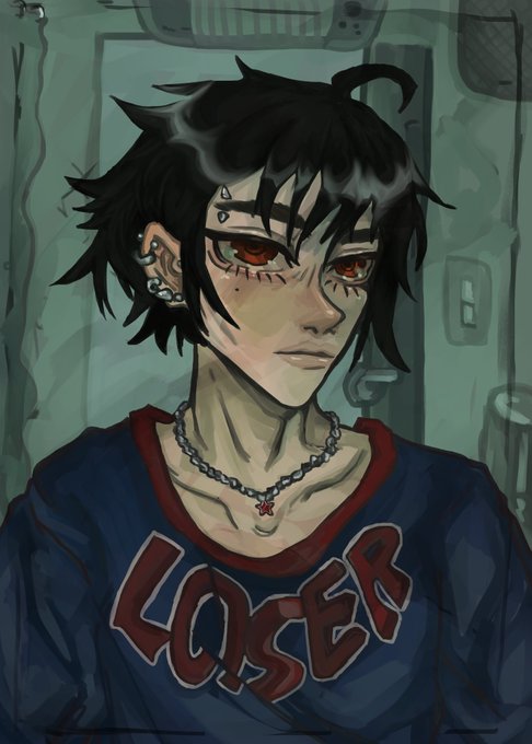 sorta Modern AU Scaramouche (ft. Roscoe <3) just cause i felt like drawing him full of piercings