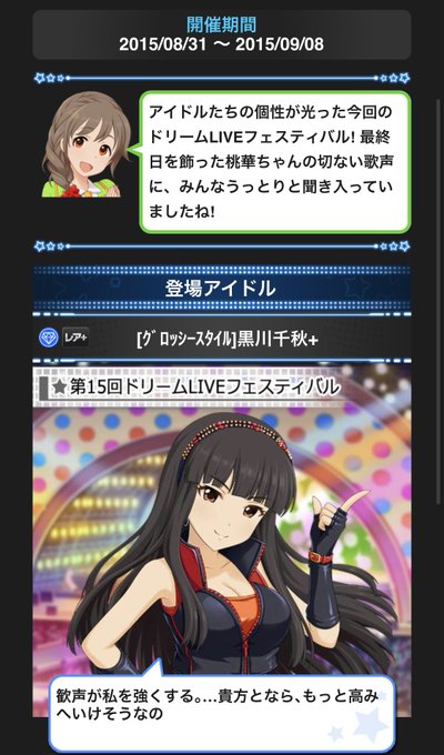 黒川千秋は完走報酬SRとして登場。