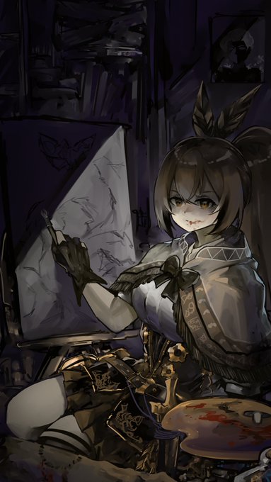 Civilization forgets, but the Ivory Dove does not. Mumei as the ghoul painter of Cultist Sim, who eats the dead to steal the memories of dead gods. Lovely art drawn by the talented @vyragami, thank you!