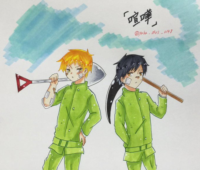 #穴掘りコンビ版深夜の真剣お絵描き兼小説60分1本勝負 「喧嘩」 できました!!!まにあってよかった〜〜でも雑いです。ごめんなさい