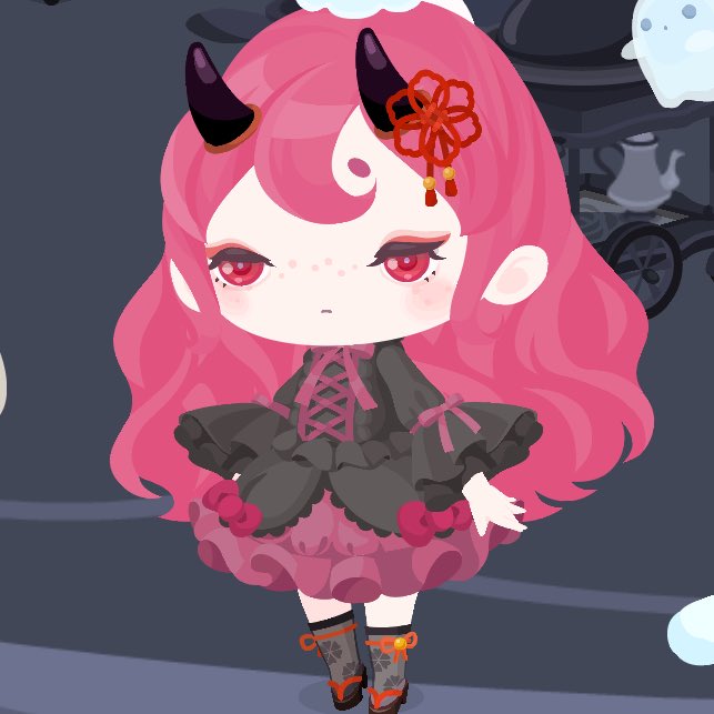 今日のコーデ(お菓子の家コーデに飽きてきたので) この足元にいるクッキーにへばりついてる(?)シナモンかわいいんだよなぁ(◜‧̮◝ ) #ハロスイ