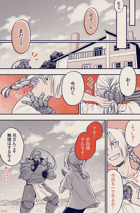 機械鎧の手術後から髪を伸ばした(切るのが面倒で伸ばしっぱなしにした)兄さん、ウィンリィに髪の毛いじられてそうだしその流れで三つ編みも教わってそう…という妄想漫画