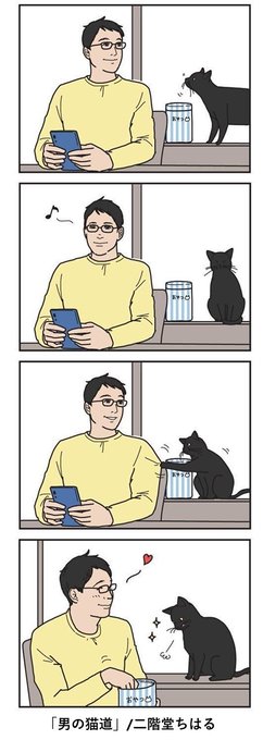 雑誌「ねこのきもち」で大人気の連載「男の猫道」WEB MAGAZINE限定話が読める! 愛猫家の男性と猫が繰り広げる4コマの世界に、あなたもやみつきになること間違いなし!