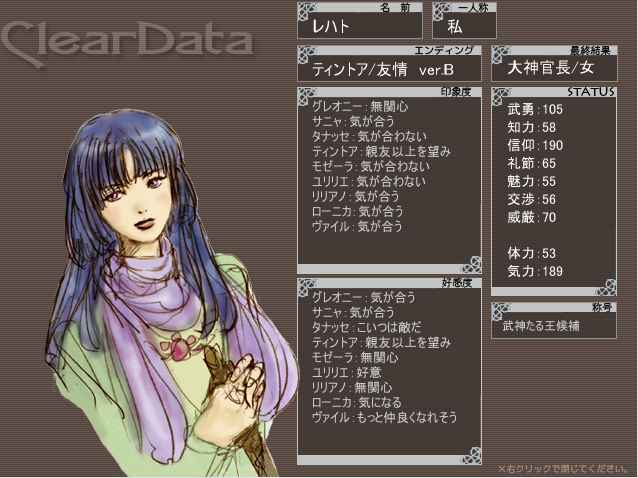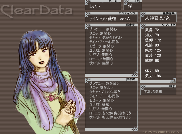 15周目 攻略サイトのおかげでなんとか一発で愛情ED。選んだ性別によって反応の変わるルージョン可愛いね……