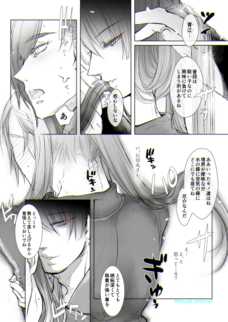 石かりカット差分 江さんにうりうりしていたのに視線に気付いて 急に三条出してくる丸さん💚💙 💚「私のだよ」 💙「ンッフフフ急にどうしたんだい?あぁ…フフ」