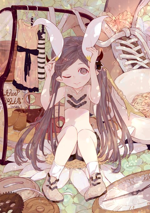 #平成最後に私の作品もっと沢山の人に広がれ祭り その2 ごちゃごちゃ物が置いてある絵 ツインテと尖り耳、小人化も好き