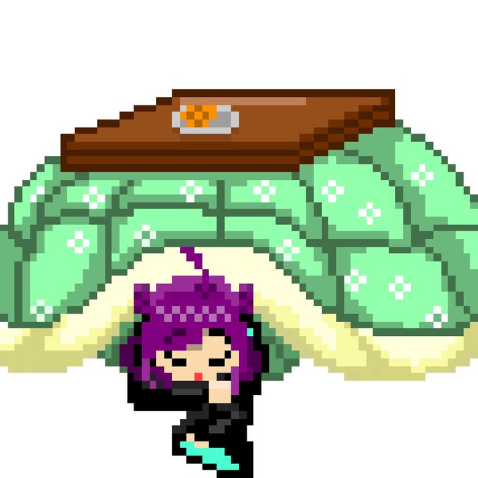 最近寒かった 実は私は本物のこたつ見たことないです、少し憧れる...気持ちいいそうだね... #PixelArt #ドッド絵の練習 #ひとなーと
