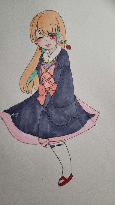みっちゃん(@fG7HbJQM4bm2Vv8)の子を描きました!見せてもらった画像長袖だったのに暑い季節だからうっかり袖をちぎってしまったのに後から気付いてしまってそこだけごめんなさい🙇♀️💦
