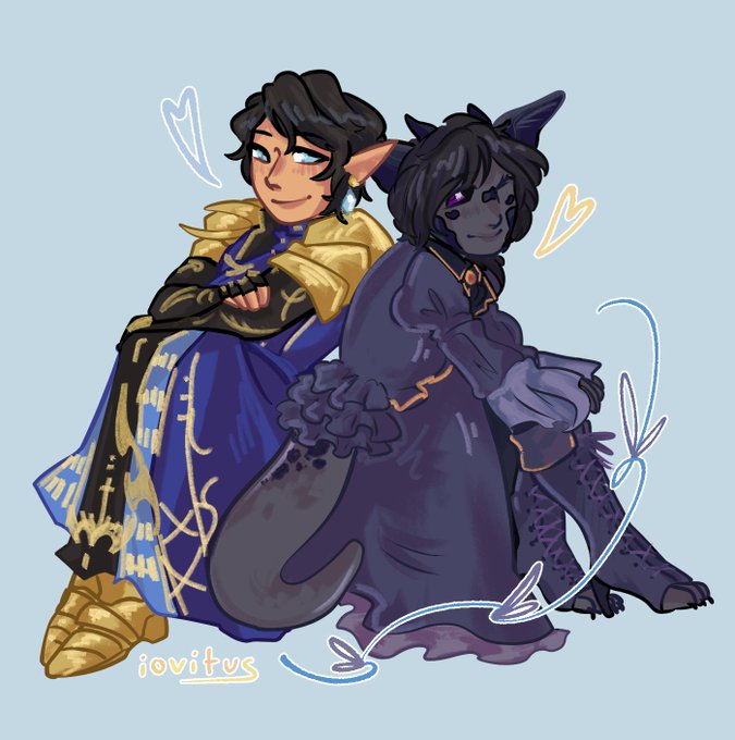 16. Krit & Froyja info/photo dump. They are Llaanaa's adoptive parents! They served Garlemald in their 20/30s! Krit is horny/evil energy 24/7 and Froyja is very serious and small bundle of anger 24/7. They both would die for Llaanaa and she is their baby girl.