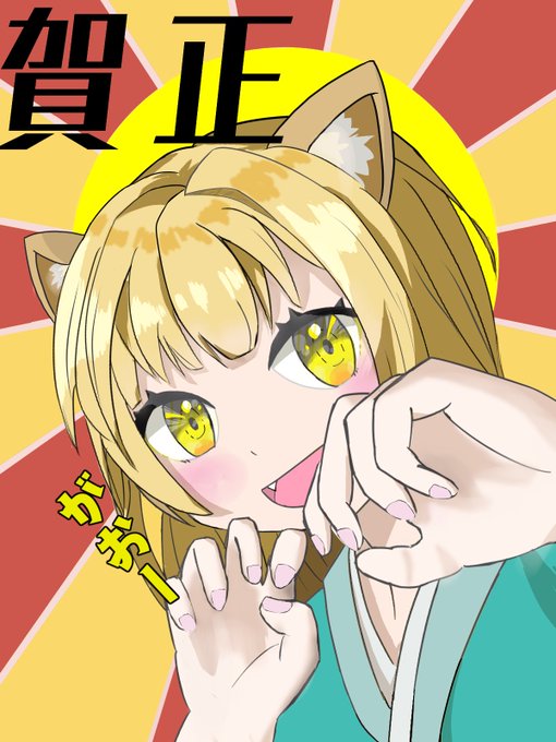 あけおめイラスト(大遅刻) まあまだ1月だからセーフ!!! #年賀状イラスト #イラスト #猫耳