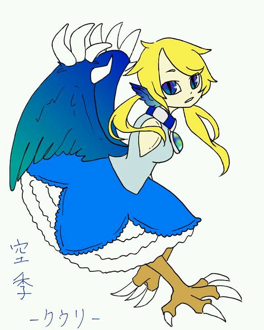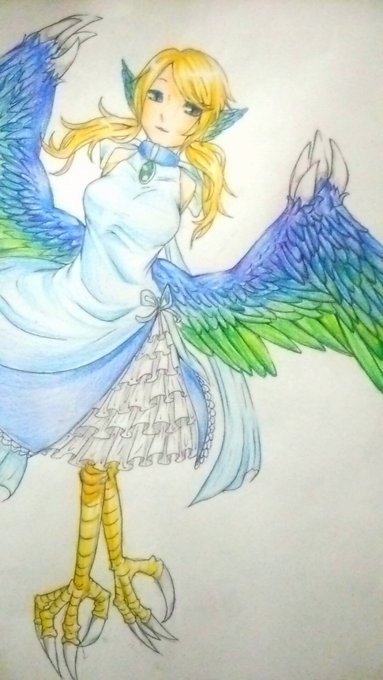 今日は金髪の子、とお聞きして…!ハーピィの空李です。青い瞳にグラデーションの翼をもつ女の子。瞳がクリンと大きいのがチャームポイントですん。