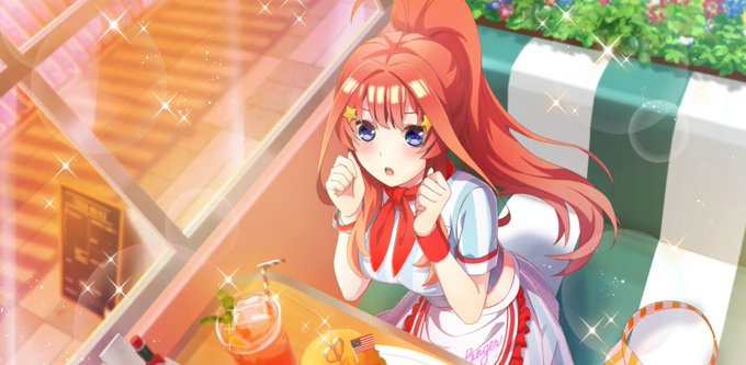 ごとぱず、確定ガチャ四葉( >Д<;)。 偏り酷すぎ😂。花嫁の方で当たって欲しいな~。 #五等分の花嫁 #ごとぱず