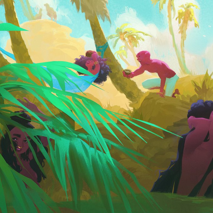 ayy #PortfolioDay it's me iris, a freelance frog in a forest pond in Spain🐸, working in Vis-dev/Concept/Colourscript,