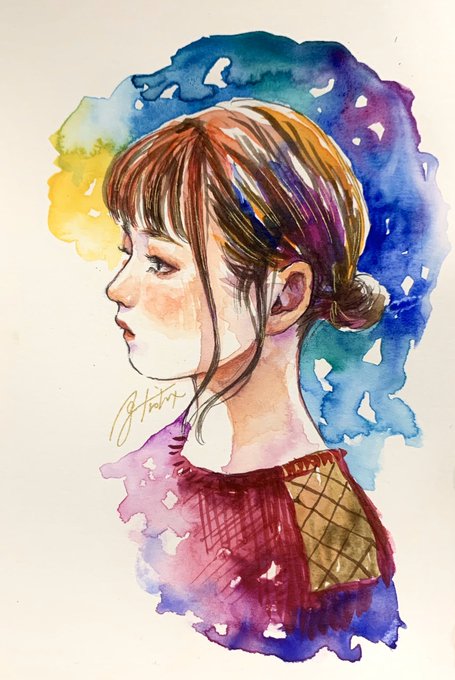 この作品は1年半くらい前に描いた作品をセルフリメイクした作品です。 前のやつも気に入っていたんだけど、今だったらもっと良く描ける気がする!と思って同じテーマでもう一度描いてみました。 少しは上達できたかな? あとこの作品の額、コルクっぽい質感でめちゃくちゃ可愛いので見て…!!