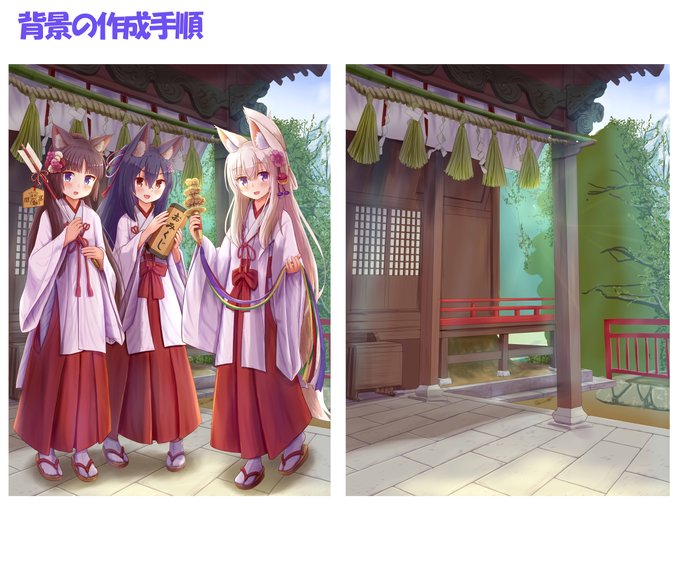 新年1発目のイラストは巫女姿のうちの子達です!