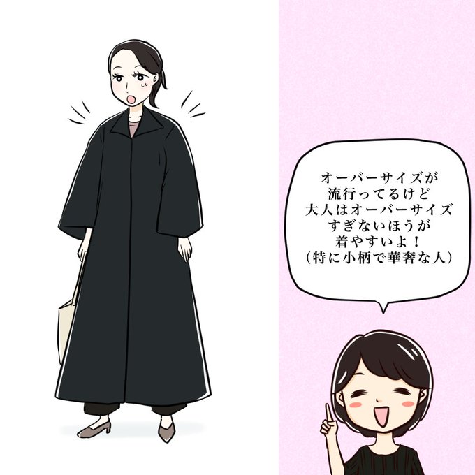 最近のはオーバーサイズが多いけど、オーバーサイズの着こなしはバランスが難しいので、袖周りがゆったり…くらいがいいと思う