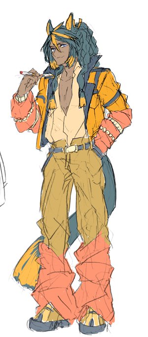 あげ忘れてた完全に前描いたものとポーズ一緒じゃん!!!などこから生えてるのって話の落書きと画面ががごちゃごちゃしすぎてわけた袖あるわよって落書き。