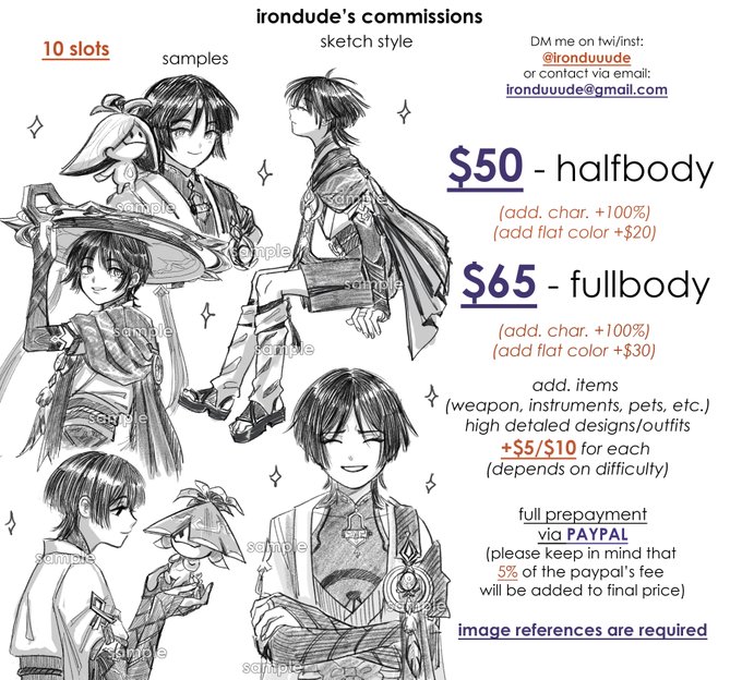 i'm opened for new slots, feel free to DM me or contact via email: ironduuude@gmail.com