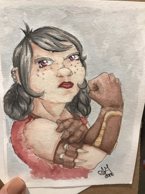 @ArtCelestial My very first WoW toon, a lady dwarf rogue. My sister who sat me down to play the game was like, “you just made the rarest race/class combination in game 😳”. Anyway here is my rock, my Mirrun. Watercolor sketch by the lovely @OtekahSunshield