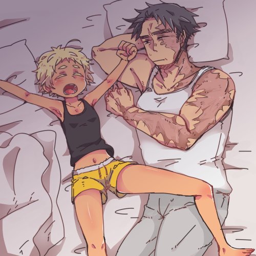 @SMSK_TL 中佐が寝不足で心配かつサボれると思って一緒に寝ることを提案したが日和の寝相が悪くて寝かせてもらえない中佐