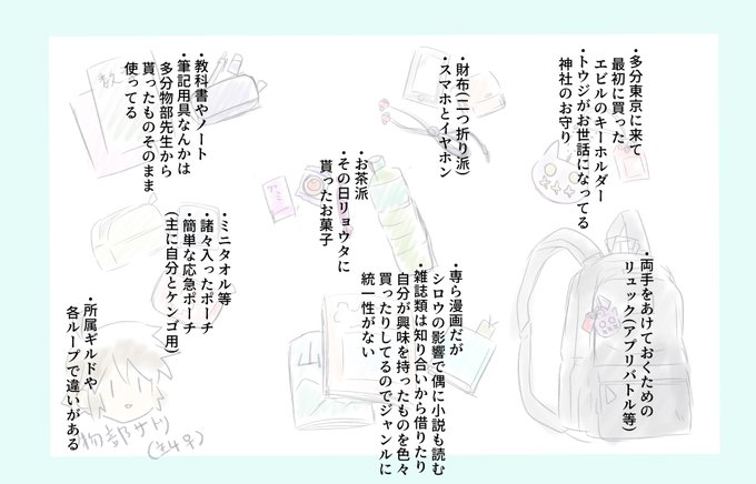 8♡…高校生のサトリ(主4♀) すでに高校生なので、どうせならとスクールバッグの中身を妄想してみる。 人との縁やイベントシーズン毎に若干違いがあるけれど、基本装備としてこんな感じ。