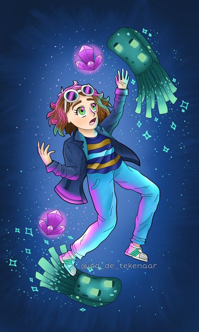 Drew my character from Minecraft with Glow Squids and Amathist :D