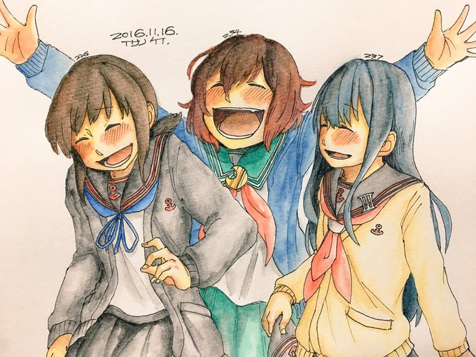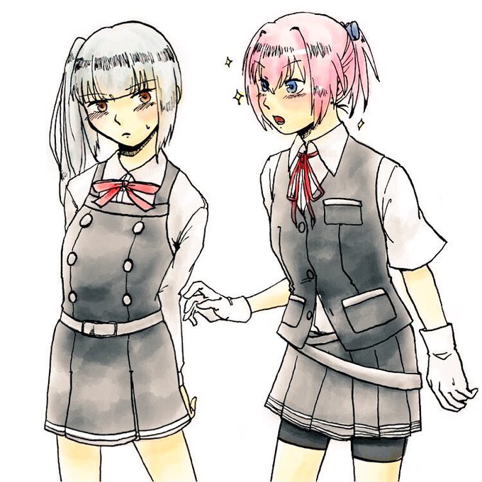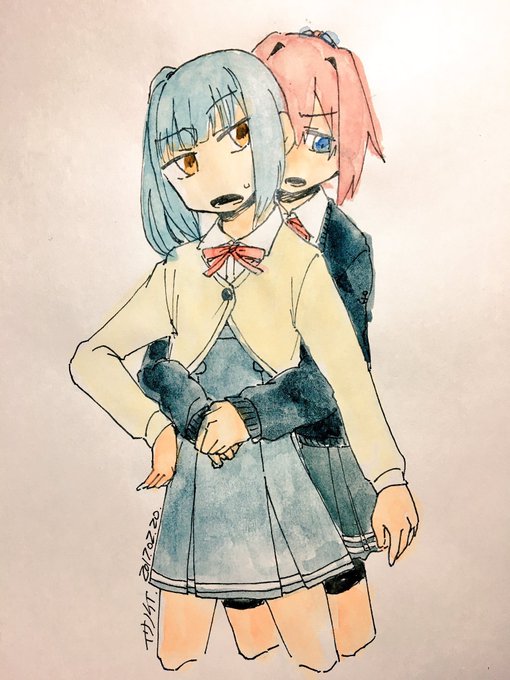 不知火「はぁ…春一番が来たというのに何ですかこの寒さは…」 霞「いい加減人で暖を取るのやめなさいよ」 いつか呟いてた冬嫌い不知火と湯たんぽ霞。雑塗り