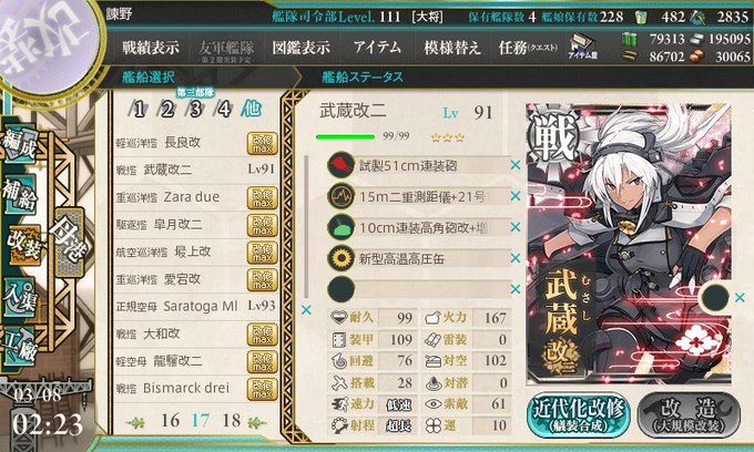 きたるE7攻略に向けて武蔵を改二に改装したぞ!資材の枯渇が怖い!