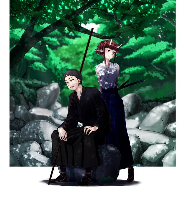 二人 #オリジナル #和風 #男 #和服 #刀 #女 #鬼娘 #鬼 https://t.co/gPIFnPz0w5