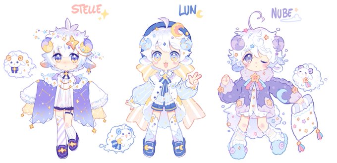 I drew some triplet sheep bbs uwu Designed by Meowkuro(Stelle) Nana-bunn (Lun) Plush-pon (Nube)