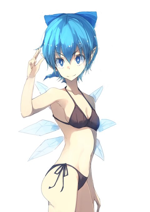 チルノ水着ver描いた! 小さい方か大きい方か迷った...そして謎ポーズ... #東方 #チルノ