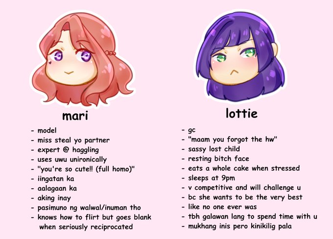 i found my dumb taglish tag yourself meme with my otome game ocs bc i can't be bothered to write serious profiles shsdks
