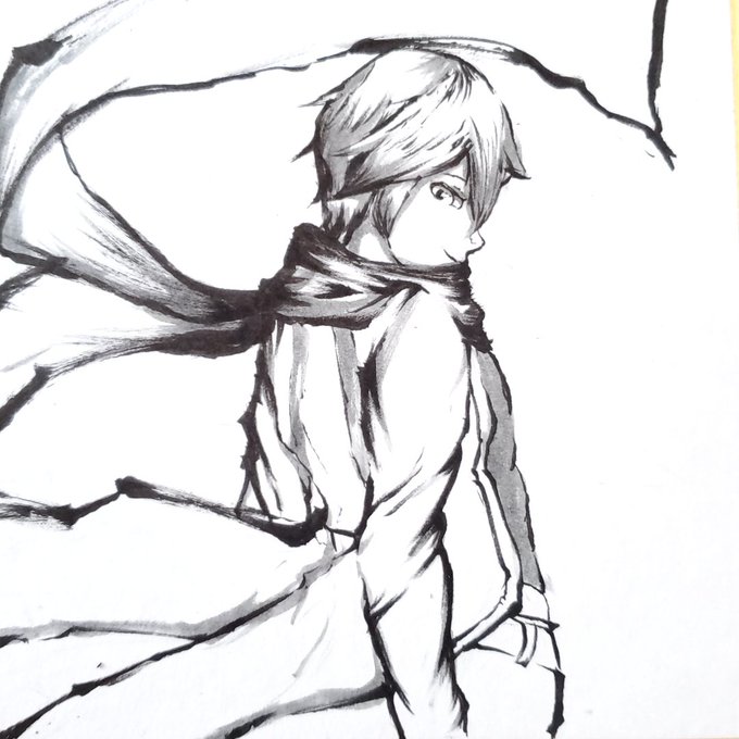 #今月描いた絵を晒そう 今月前半結構墨絵風イラスト描いてたな