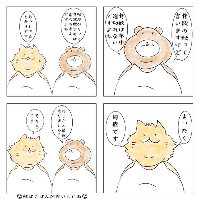 【日替わり4コマ漫画 金曜担当→はらぺこくまねこ】#32「食欲の秋」
